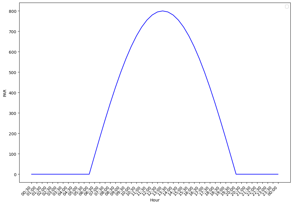 PAR = par_max * sin(π * (hour - sunrise) / daylength)